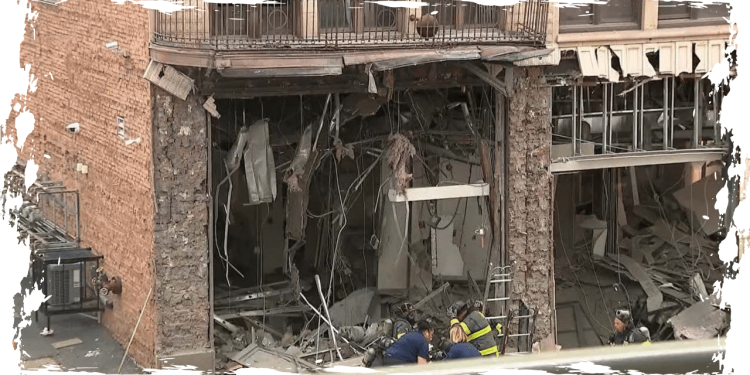 The authorities are uncertain about the cause of the explosion, which affected a building housing both a Chase bank and apartments.