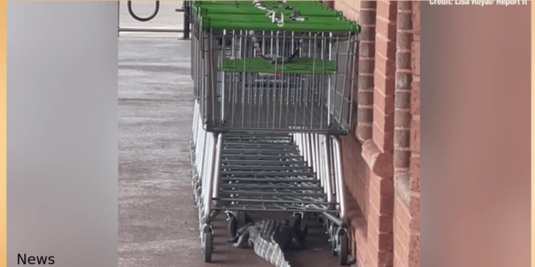 In the video, shoppers and workers can be seen gathered around the caution tape, with carts used to block off the immediate area where the alligator was hiding.
