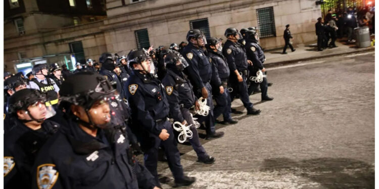 Hundreds of NYPD officers, equipped with batons and donned in riot gear, forcefully entered Columbia’s campus on Tuesday evening. The university administration had requested their assistance to dismantle pro-Palestinian protest encampments established by students and regain control of a campus building seized by the protesters.