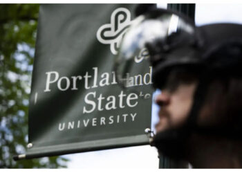 A man drove his car toward a crowd of pro-Palestinian protesters at Portland State University (PSU) in Oregon, spraying a...