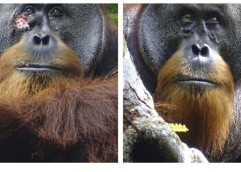 An orangutan appeared to cure a wound with a tropical plant's medicine, the latest illustration of how some animals try...