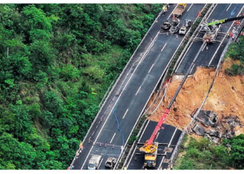 According to state media, a section of a highway in southern China collapsed early Wednesday, resulting in cars tumbling and...
