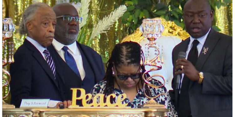 Rev. Al Sharpton and civil rights lawyer Ben Crump addressed Tyson’s memorial at the Hear the Word Ministries church. Police body cameras captured Tyson repeatedly shouting “I can’t breathe” as they held him and forced him to the floor of the AMVETS club, leading to his death on April 18.