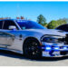 Across the locked campus gates, police officers observe the anti-Israel encampment.