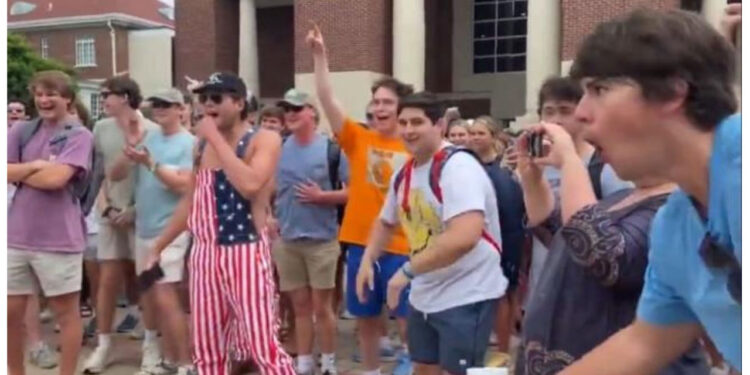 On Thursday, counter-protesters swamped a tiny pro-Palestine demonstration that had peacefully convened in the campus’s grassy area. Counter-protesters ringed the fenced-off protest area, chanting “Hit the showers!” and “Your nose is huge,” according to nonprofit news outlet Mississippi Today.