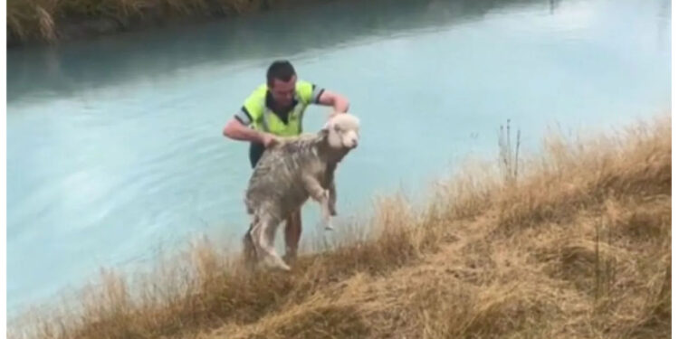 When this unfortunate sheep fell into an irrigation canal, it found itself in desperate need of rescue. Unable to escape the water, the sheep clung onto the edge with all its strength, trying to avoid being carried away by the current. Luckily, two compassionate individuals happened to be passing by just in time. This heartwarming incident of sheep rescue was captured on camera.