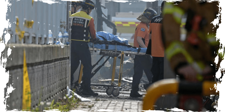 In Hwaseong city, south of Seoul, a lithium battery manufacturing factory caught fire on Monday, resulting in the tragic loss of over 20 lives. The majority of the deceased were Chinese workers, as confirmed by officials. The rescue team retrieved the bodies after an extensive search of the site, as reported by local fire official Kim Jin-young during a televised briefing.