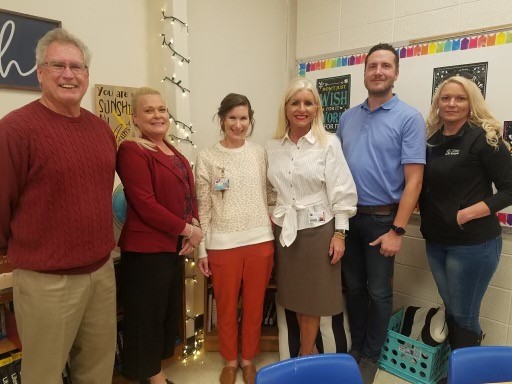 Pictured, from left, are Steve Lungren, GM of The Bull, Stacey Sattre, principal at West Middle School, Kathryn Combs, award recipient, Superintendent Shelley Arrott, Josh Wright, Blackwell Dentistry, and Brenna Scott, United Country/Shaw Real Estate.