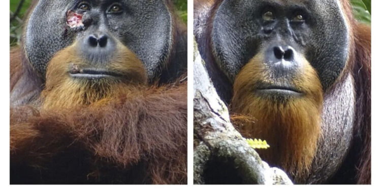 An orangutan appeared to cure a wound with a tropical plant’s medicine, the latest illustration of how some animals try to heal themselves with natural therapies, scientists revealed Thursday.