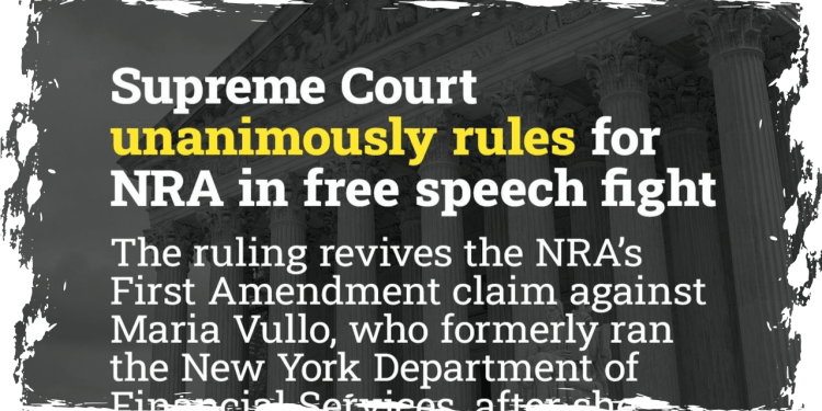 In a landmark decision on Thursday, the Supreme Court unanimously upheld the National Rifle Association’s (NRA) right to continue its legal battle against a former New York regulator, citing the importance of free speech.