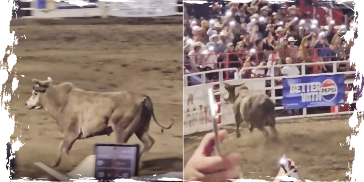 “Rodeo livestock professionals quickly responded to safely contain the bull,” event organizers said in a statement. Our rodeo pickup men secured it next to the livestock holding pens and immediately placed it into a pen.