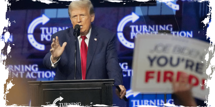 During a speech at a convention of Turning Point Action in Detroit, the former president criticized Biden by stating, “He doesn’t even know what the word ‘inflation’ means. I think he should take a cognitive test like I did.”