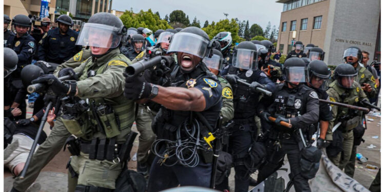 Don Wagner, chair of the Orange County Board of Supervisors, thanked the multiagency response on Wednesday, saying the officers demonstrated restraint by “giving protesters hours to peacefully remove themselves from the premises, regularly warning them through a loudspeaker system, gradually moving in and removing tents, canopies, trash, and barriers from the encampment, all without the violence we have seen recently on other campuses.”