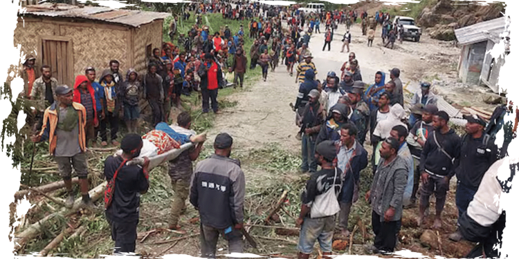 Convoys transporting food, water, and other essential supplies to the devastated village located 60 kilometers from the provincial capital, Wabag, have encountered risks associated with tribal fighting in Tambitanis village, which is located halfway along the route. The Papua New Guinea soldiers have been providing security for the convoys along the blocked highway.